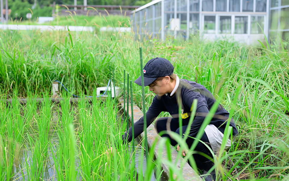 研究室に所属してからは、土壌微生物の総体量が多ければ多いほど、農作物にとって良い環境であるという前提から、土壌の質が農作物に与える影響を可視化する研究に取り組みました。しかし、研究を進めていくうちに土壌微生物の総体量だけが農作物へ影響を与えているわけではないと実感し、もっと微生物と植物との応答を見ていきたいと考え、修士課程ではイネの共生菌の研究をしている植物免疫学研究室(以下、西條研)に進学しました。