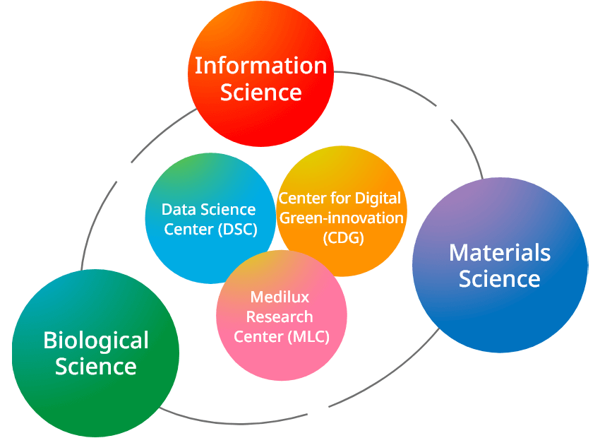 We deploy data-driven science across information, bio, materials, and integrated fields in a cross-sectoral manner to pioneer new interdisciplinary integrated fields.