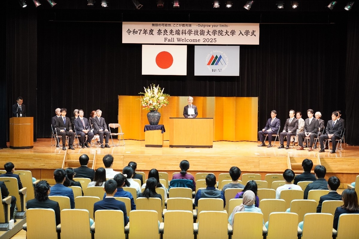 はじめまして。教職員を代表して、皆さんを本学に心から歓迎いたします。本日、日本を含む17の国と地域から87名の新入生が本学、奈良先端科学技術大学院大学(NAIST)に加わりました。