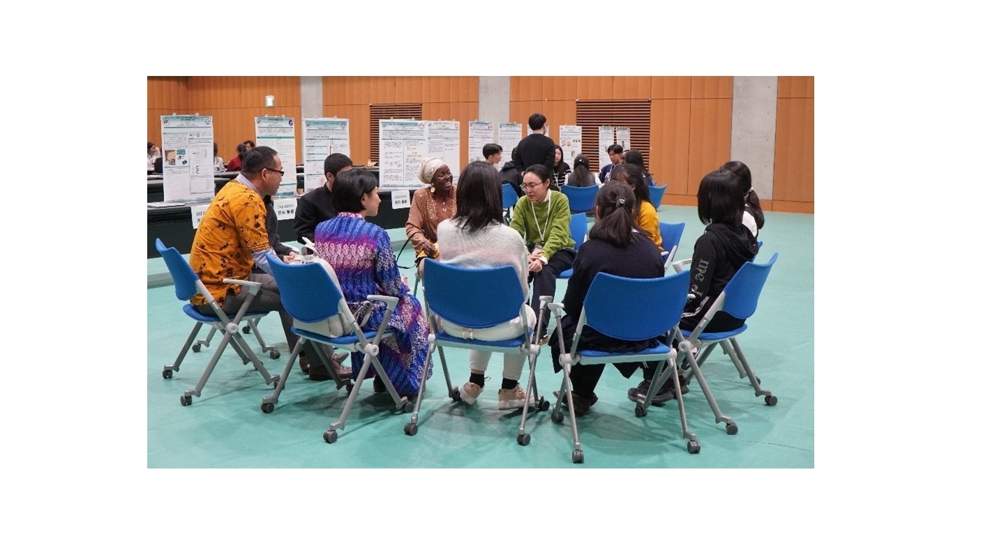 1日目はまず、JICA関西・開発大学院連携課 三浦眞暉様を特別講師に迎え、JICAにおける国際連携活動について、海外協力隊での経験談を交えてお話を伺いました。その後に実施した「受講生によるポスターセッション」では、活発な質疑応答を通じて、各受講生が探究・研究の取り組みについての相互理解を深め、今後の活動の参考としていました。セッションの後半には、JICA留学生も合流し、立食やグループに分かれての交流会となりました。
