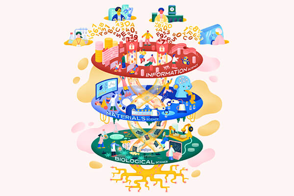 データ駆動型サイエンスを情報・バイオ・物質また、その融合領域に横断的に展開し、新しい学際融合領域の開拓を行います