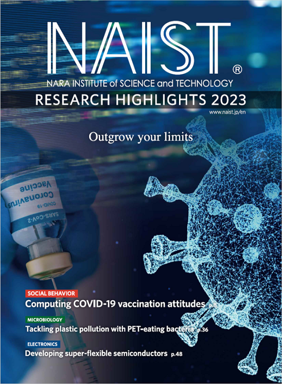 研究推進部門では、国際情報発信の強化を推進しており、本学の研究を海外に発信しています。その一環として、本学の最新の研究トピックスや成果を紹介するNAIST Research Highlightsを出版しています。また、研究成果等のニュース記事を制作し、アメリカ科学振興協会(AAAS)のオンラインニュースサービスEurekAlert!や本学英語版HPに掲載しています。